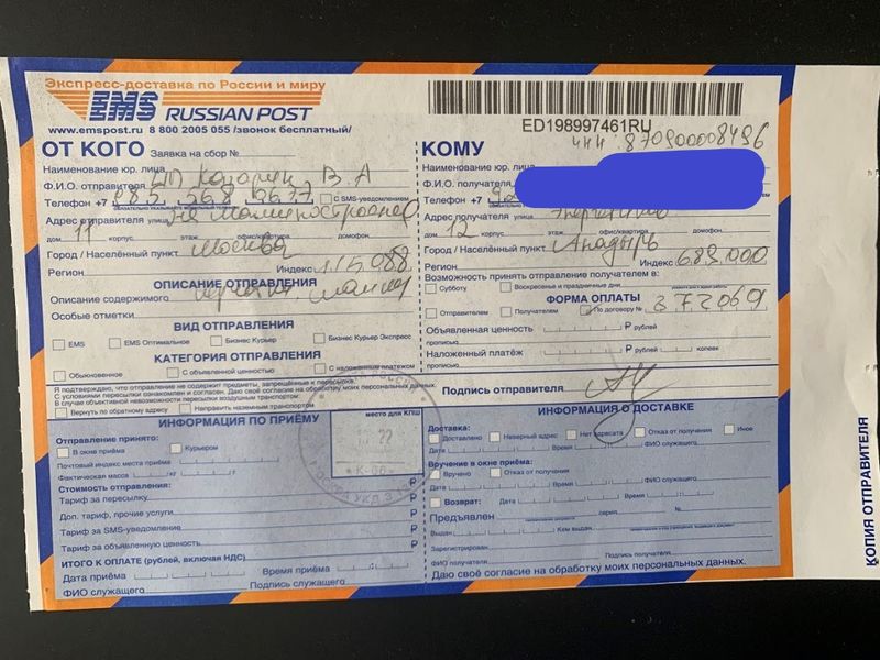 - Фото отправок